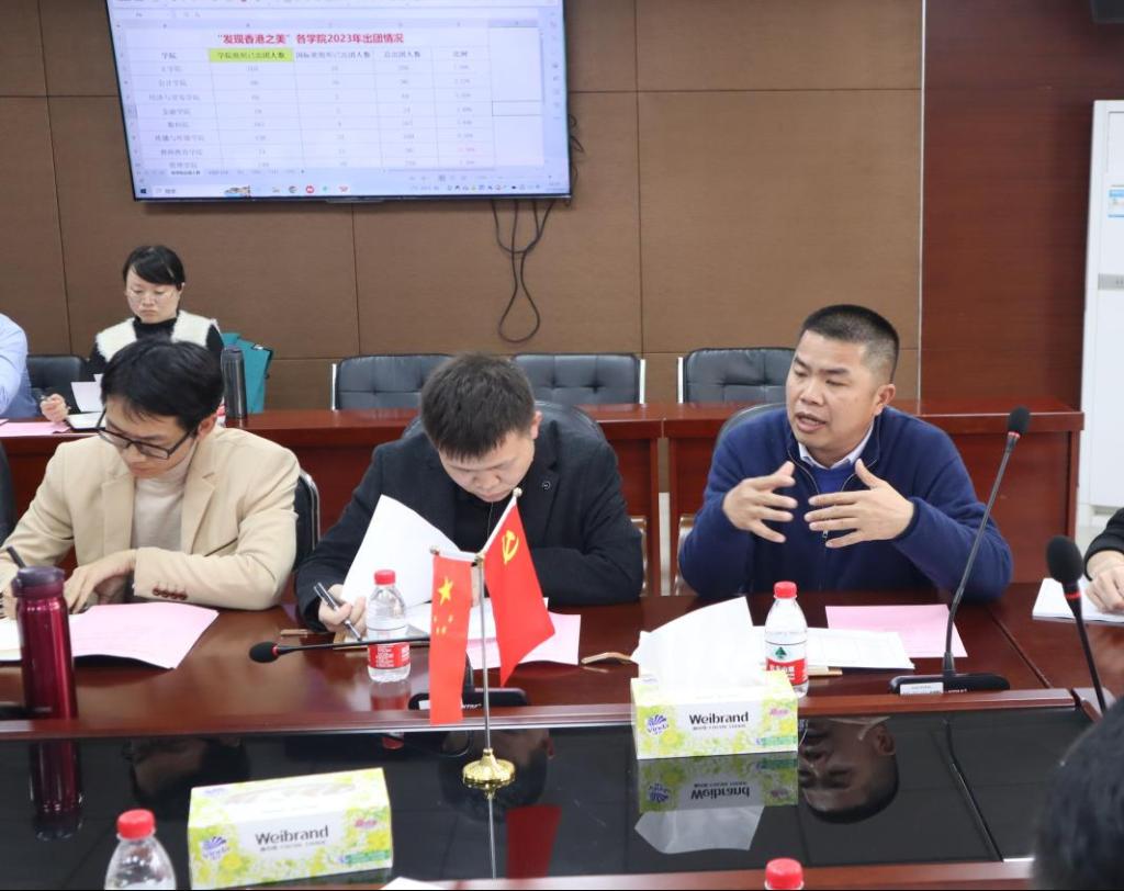 2024年3月5日,永利官网在华商学院广州校区行政楼513会议室顺利召开了“发现香港之美”研学专题研讨会。党委书记陈玉欢、副校长吕峻闽、校长助理、相关职能部门负责人、各二级学院学工书记参加了本次研学专题研讨会。会议由国际交流与合作处暨港澳台办主任王文忠主持。