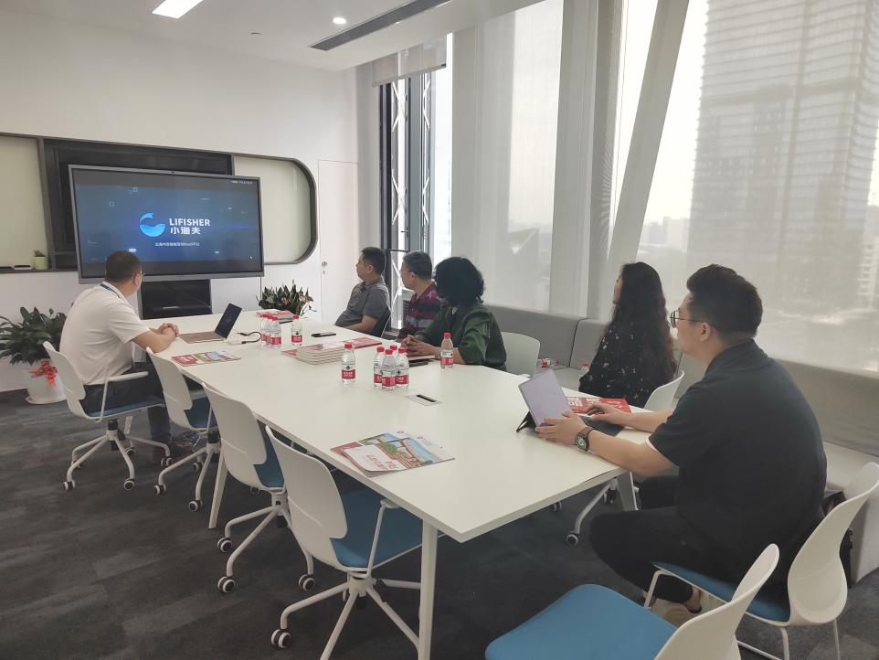 为深化产教融合,促进教育与产业的无缝对接,培养契合行业前沿需求的高素质应用型人才,2024年5月10日上午,产教融合办公室主任唐明琴、经济贸易学院院长李广明、经济贸易学院院长助理石立、经济贸易学院跨境电商系副主任曹维以及广州桃花岛电商咨询有限公司商务总监刘茂彬一行赴广州经纬国际控股集团有限公司旗下的小渔夫跨境电商公司(以下简称“小渔夫”)参观交流。