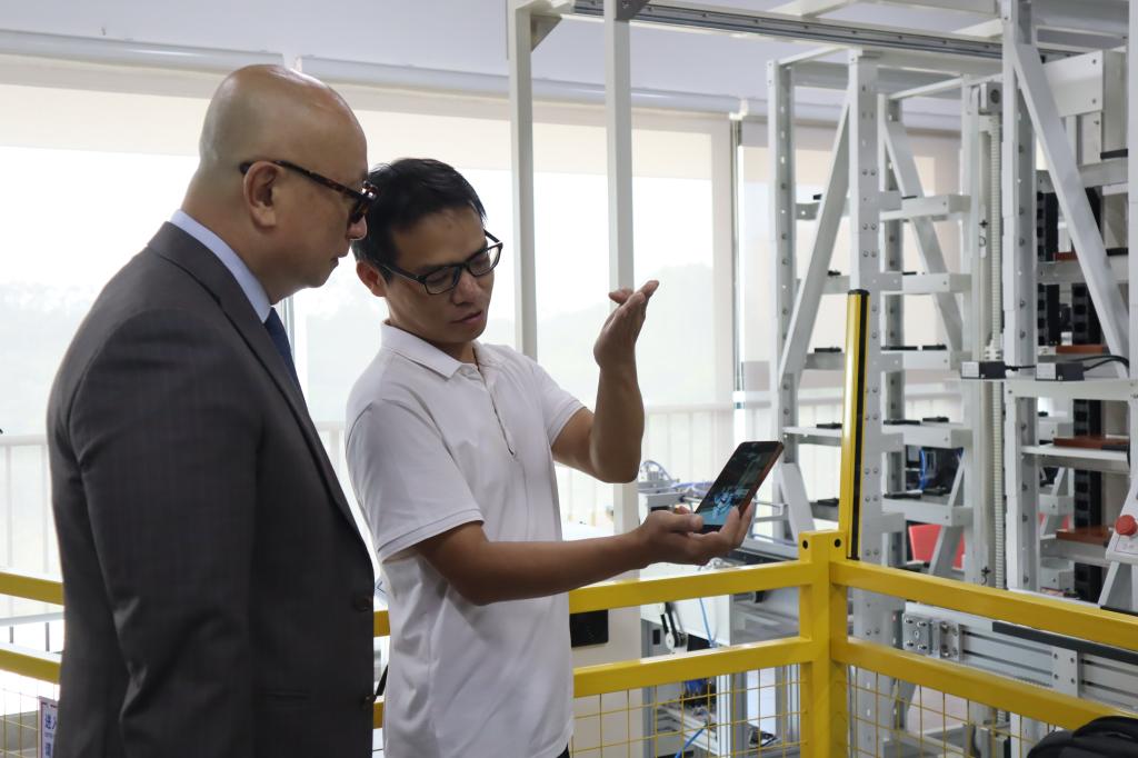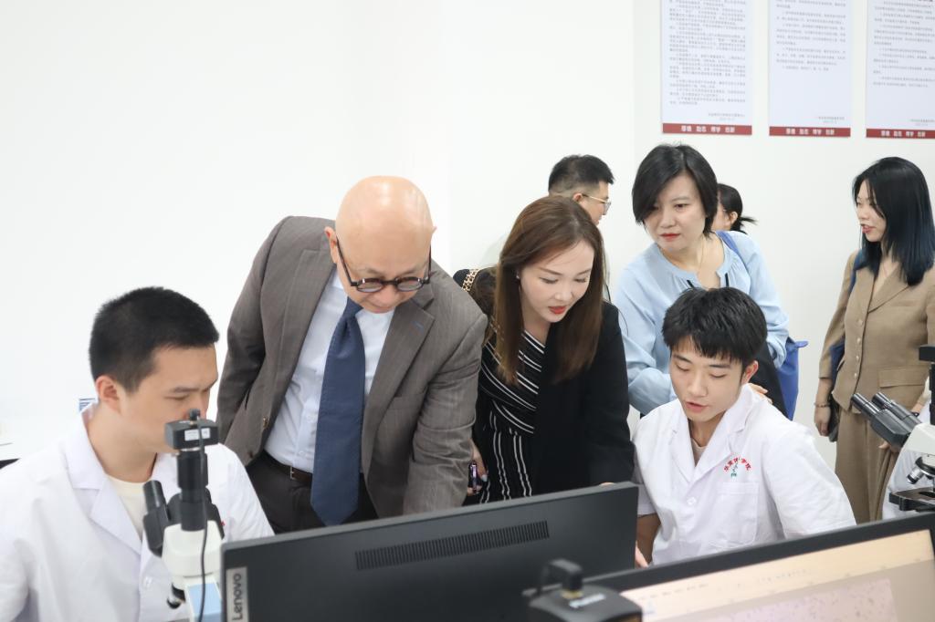 新加坡社科大学代表团先后参观了永利官网医药健康实验中心、人工智能产教融合实训基地和桃花岛电商中心等教学实践基地。在这些充满活力的实践课堂中,代表团不仅近距离观摩了同学们的实际操作和学习过程,还与师生们交谈互动,加深了他们对永利官网教学理念和实践能力的理解。