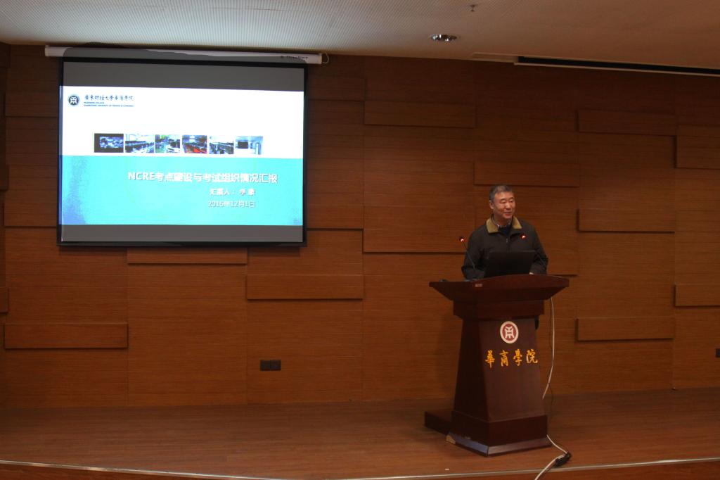 接待会议在图书馆报告厅举行,杨丽娟副院长代表学院向来宾表示热烈欢迎,并介绍了学院招生的发展状况。接着,李康主任回顾了我院第一次承办全国计算机等级考试的相关情况,包括考点申报、考点建设、考试组织和考试保障等工作。从3月份申报考点开始,到9月份成功举办,每一步具体落实到位,全员参与,相互配合,严格要求,做好充足准备。