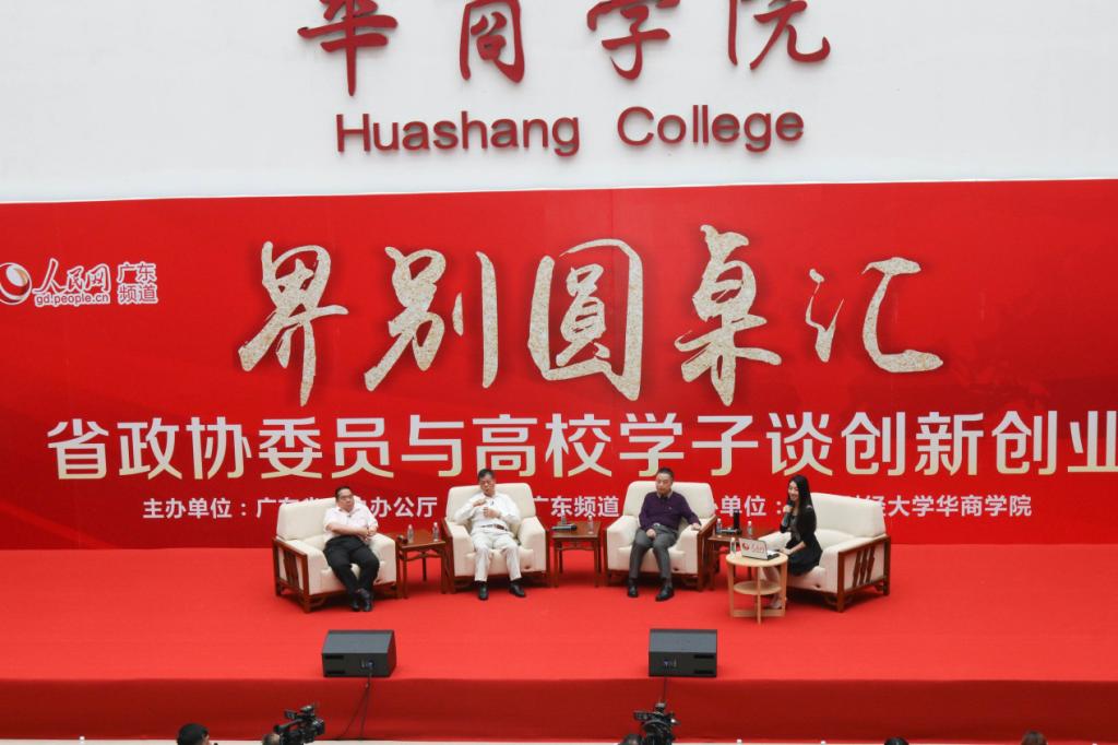 4月21日上午10点,省政协委员与高校学子谈创新创业座谈会在华商学院中央图书馆内场隆重举行。出席座谈会的嘉宾分别有省政协常委、远光软件股份有限公司董事长陈利浩,省政协常委、广州市天源实业有限公司董事长温良,省政协委员、中山市丹丽洁具有限公司董事长崔广德。本次座谈会由广东省政协办公厅和人民网广东频道主办,广东财经大学华商学院协办。
