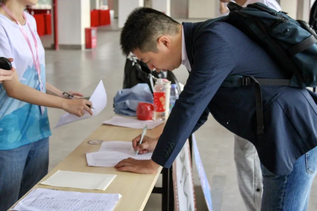 在招聘会开始前,50余家参会单位在健康医学院志愿者的指引下陆续到达会场并开展招聘工作。学校和学院领导们亲临现场,表达了对就业工作的关心,并与参会单位就学院和学生的发展情况进行了深度的交流。