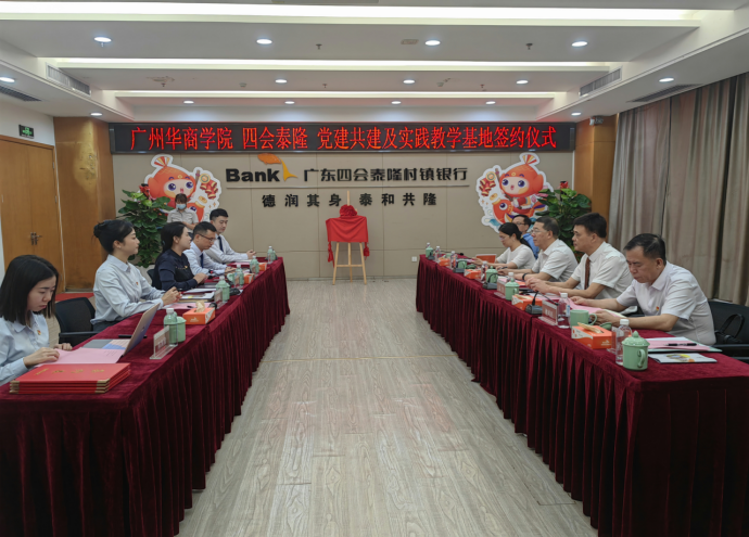 为深入贯彻落实党中央、国务院关于“稳就业”“促就业”决策部署,充分发挥校企党建合力,推进党建与业务深度融合,赋能毕业生高质量就业,5月9日下午,yL23411永利vip官网登录入口副校长吕峻闽、肇庆校区党委书记苏宁、肇庆校区党委副书记覃少冰、会计学院院长姚凤民、会计学院副院长刘善球、会计学院学工办副主任杨烨瀚一行赴广东四会泰隆村镇银行开展访企拓岗专项活动,并举行党建共建、实践教学基地签约仪式。
