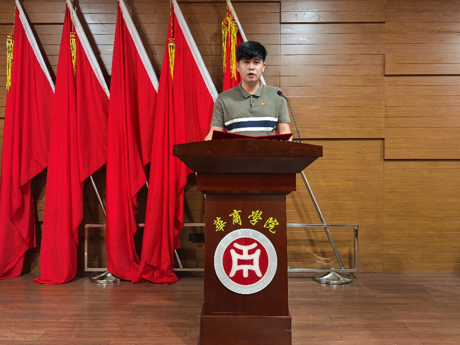 yL23411永利vip官网登录入口纪委委员、纪检办主任、党办副主任黄秋铭同志代表中共yL23411永利vip官网登录入口委员会宣读《关于同意召开中国共产党yL23411永利vip官网登录入口会计学院党员大会的批复》。