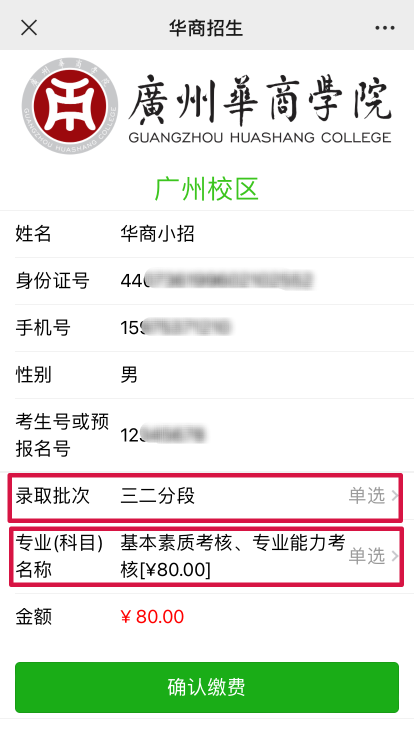 方式2.进入“yL23411永利vip官网登录入口招生办公众号”,选择菜单栏“招生资讯”—“报考费”;进入缴费页面;准确填写个人信息,点击“下一步”;选择三二分段批次及科目;核对相应金额,无误后点击“确认缴费”即可。