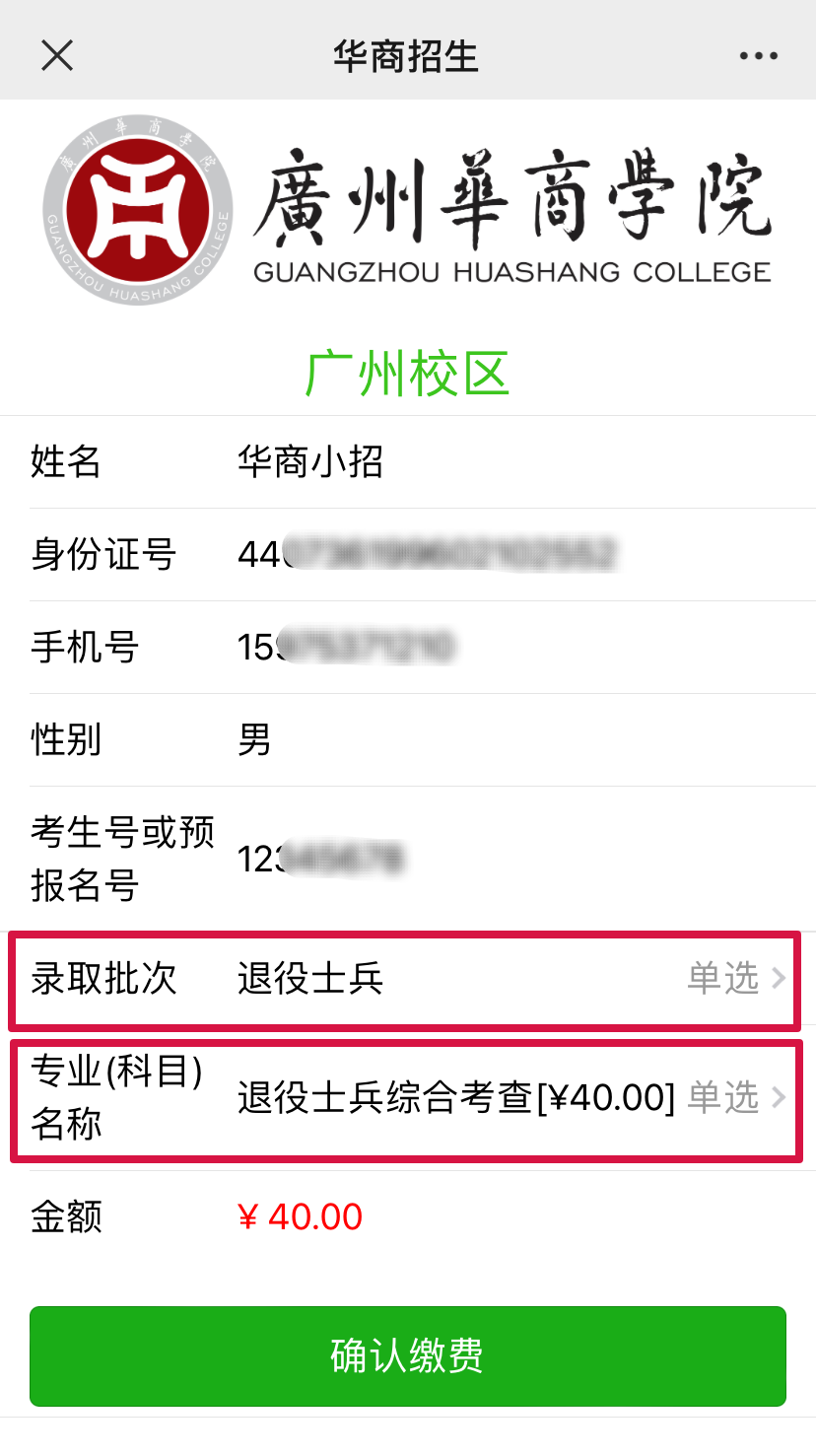 方式2. 进入“yL23411永利vip官网登录入口招生办公众号”,选择菜单栏“招生资讯”—“报考费”;进入缴费页面;准确填写个人信息,点击“下一步”;选择退役士兵批次及科目;核对相应金额,无误后点击“确认缴费”即可。