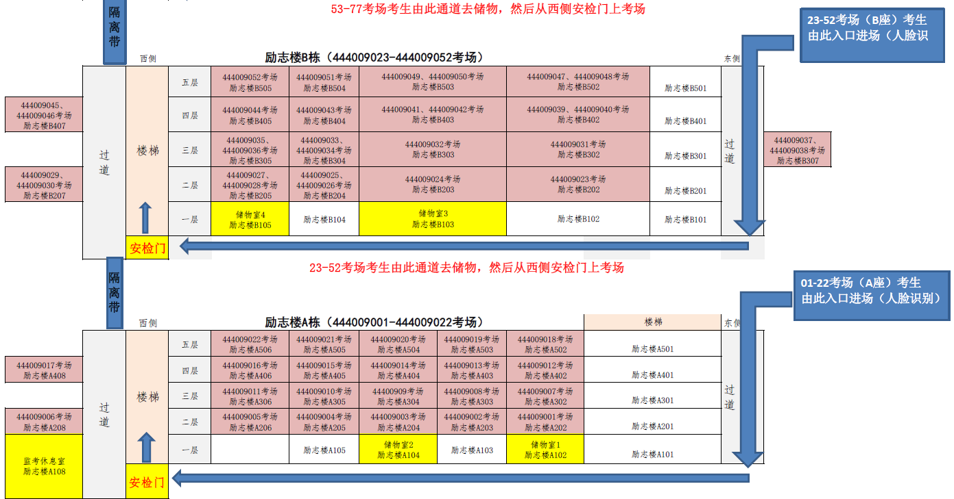 注意:考试结束后,考生从东侧楼梯下至一楼取回物品,从西侧大门离场。