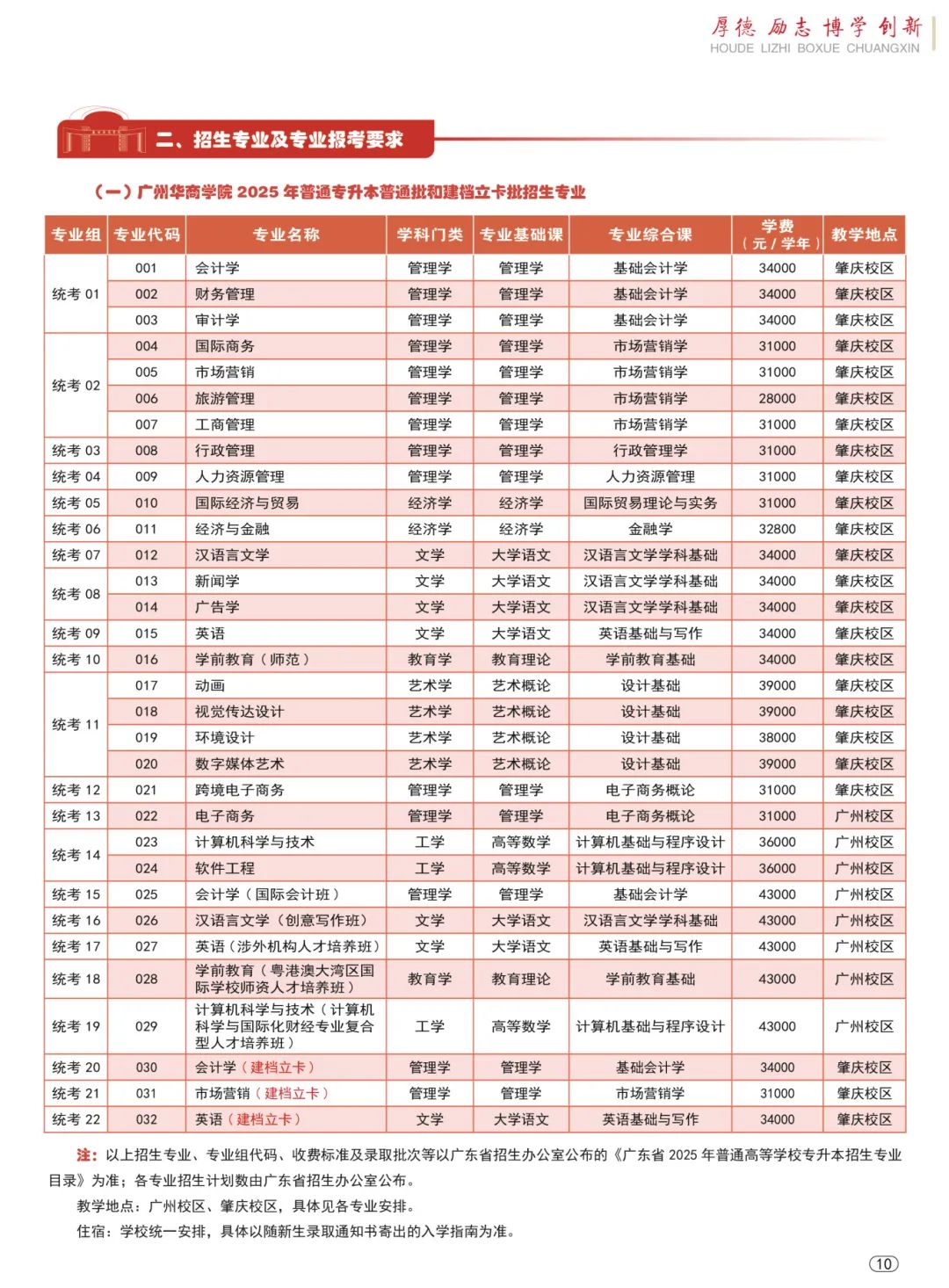 注:以上招生专业、专业组代码、收费标准及录取批次等以广东省招生办公室公布的《广东省2025年普通高等学校专升本招生专业目录》为准;各专业招生计划数由广东省招生办公室公布。