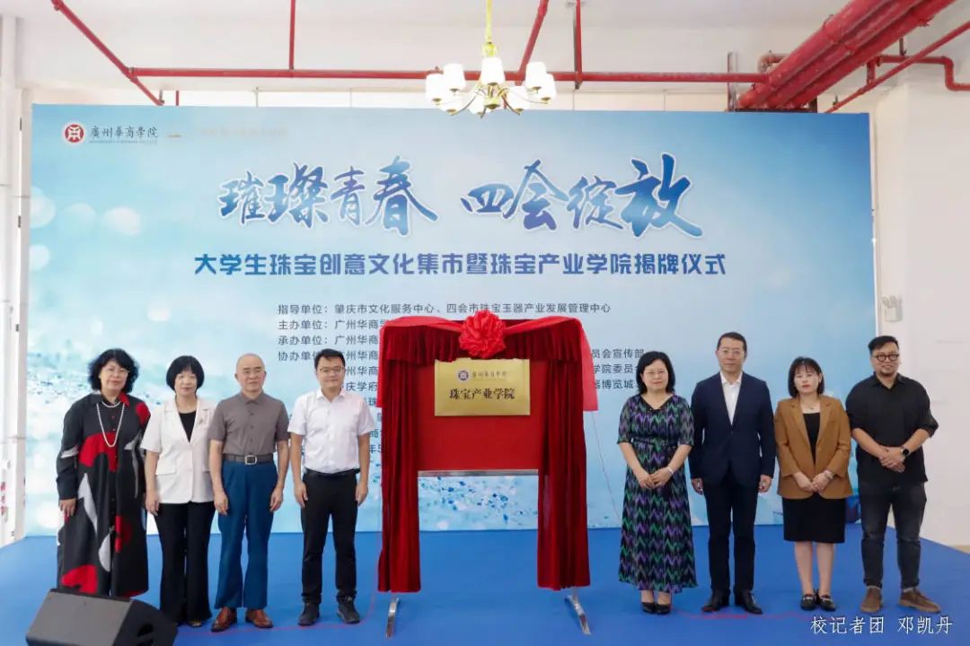 在与会嘉宾与全体师生的见证下,四会市人民政府副市长梁俊杰及学校领导共同揭牌。标志着yL23411永利vip官网登录入口珠宝产业学院正式成立。