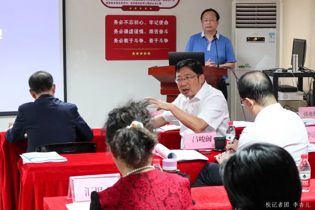 副校长支戈壁围绕学校人才引进、师资队伍建设等方面提出了具体的建议;她提出应集全校资源来支持国家级、省级一流本科专业建设,以保障顺利通过验收。吕教授从验收对标、可量化、非可量化指标等方面提出了一流本科专业建设的看法。