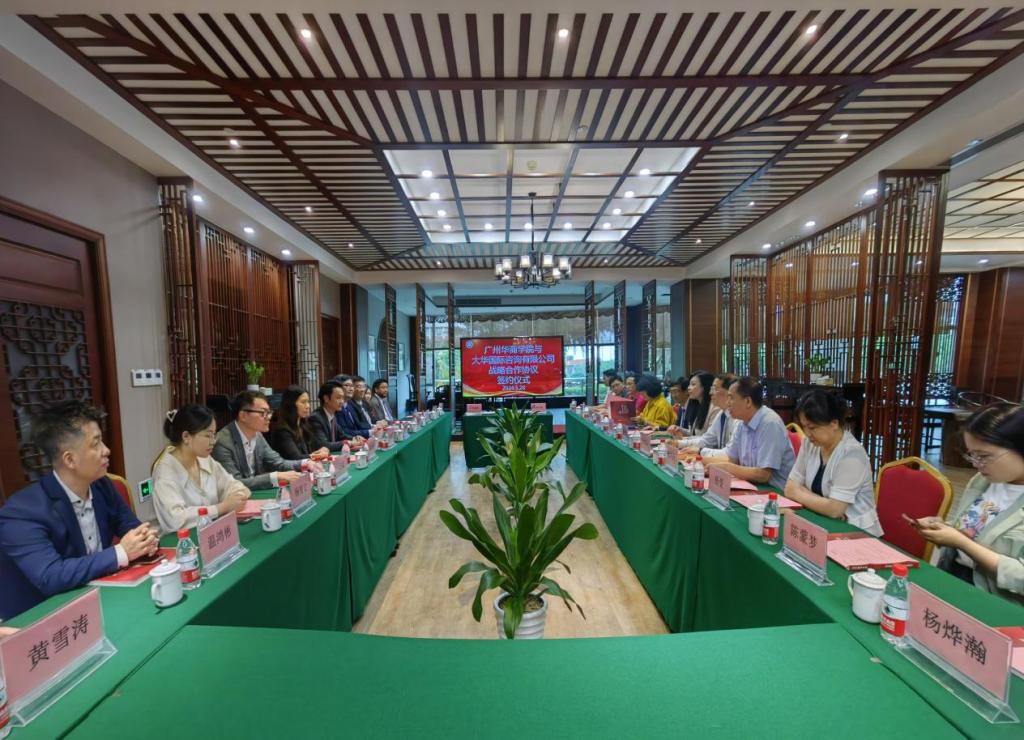随后,双方举行签约仪式。吕峻闽副校长代表学校领导班子对大华国际董事会精英和高级管理团队表示热烈欢迎和感谢。他详细介绍了yL23411永利vip官网登录入口学科特色和教育数智化发展情况。希望校企双方在数智化人才培养、产教融合创新、现代产业学院建设、国际商务服务等领域进行广泛合作,期待合作推陈出新,惠及万千学子,服务好粤港澳大湾区建设和发展。